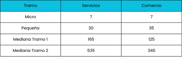 Para aquellas empresas cuya actividad principal declarada ante la AFIP sea alguna de las detalladas en el siguiente cuadro, a efectos de la inscripción como Micro, Pequeña o Mediana Empresa, se considerarán los límites de personal ocupado, sin analizarse las ventas totales: