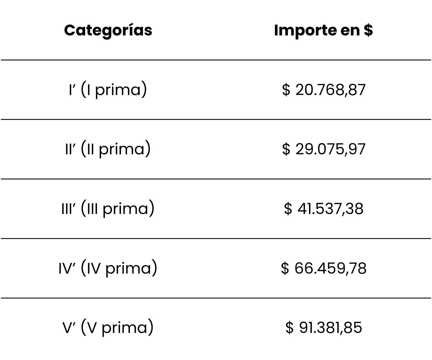 De esta manera, los valores se incrementan a $ 18.988,68 para la categoría I y van subiendo hasta llegar a $ 83.549,12 para el escalón V.