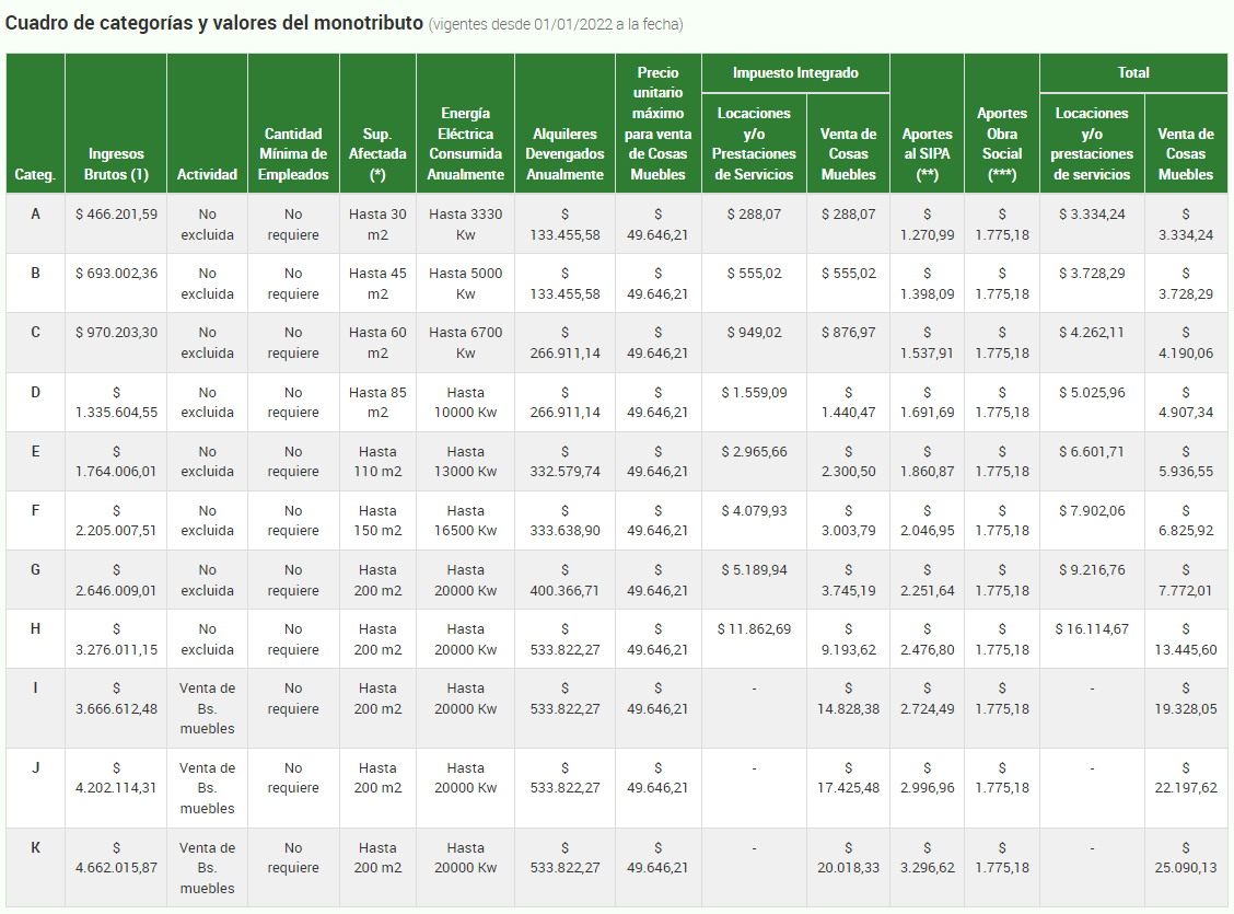 En relación a los valores expuestos anteriormente, que conforman a la nueva tabla de monotributo, aquí algunas estadísticas respecto a los valores 2022: