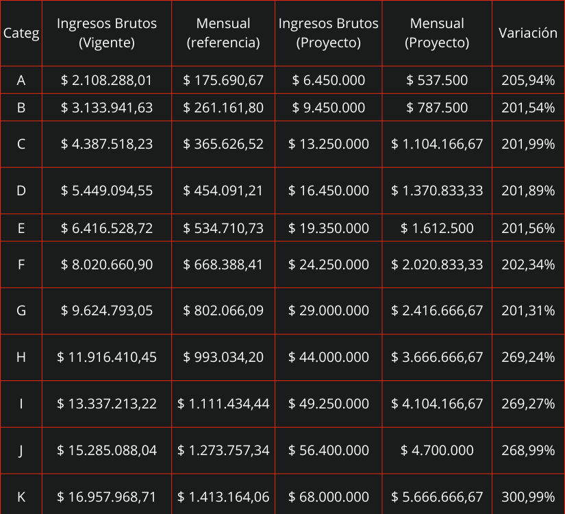 Dentro del capítulo fiscal de la "Ley Bases" se encuentran medidas "paliativas y relevantes" que actualiazarían los Ingresos Brutos devengados, alquileres, precio máximo unitario y cuota de todas las categorías de monotributo