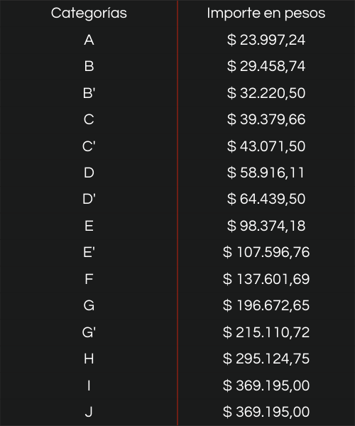 Estos valores entraron en vigencia a partir del día 15/04/2024
