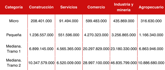 La resolución 220/2019 aprobó los límites de categorización según ventas totales anuales, que fueron siendo actualizadas conforme la propuesta efectuada por la Dirección Nacional de Fortalecimiento de la Competitividad PYME.
